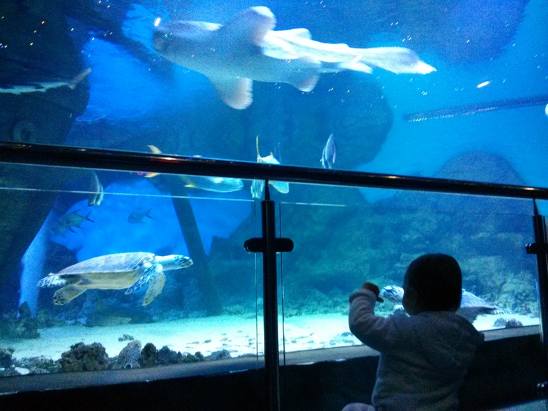 В один из недавних чудных дней, когда проснувшись рано утром я услышала, как дождь тарабанит по подоконнику,а дома совсем сидеть не хотелось, пришла в голову мыль поехать куда-нибудь. Выбор пал на океанариум. Причин было несколько: 1. ребенок любит путешествовать; 2. интересуется водой и всем, что в ней обитает; 3. относительно недалеко от дома; 4. после посещения можно пройтись по магазинам, пока ребенок будет спать.