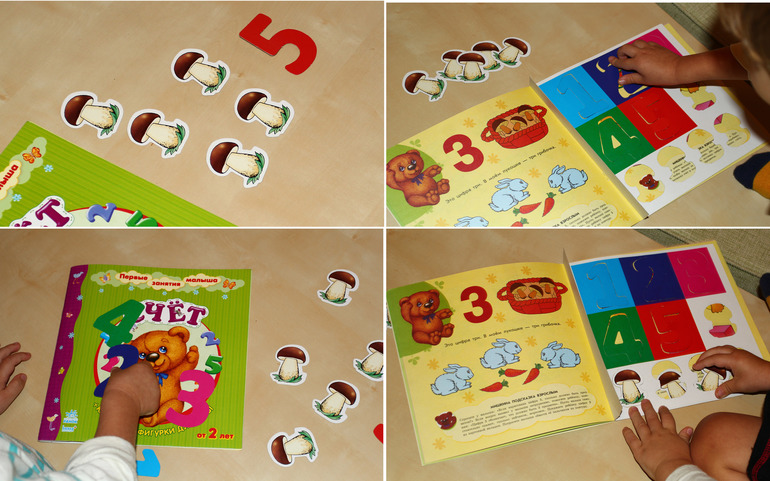 отправились мы считать грибочки. Кирилл сам себе создавал игры - вставлял цифры в листок на свое место, подыскивал каждой цифре свою пару. Горжусь невероятно!
