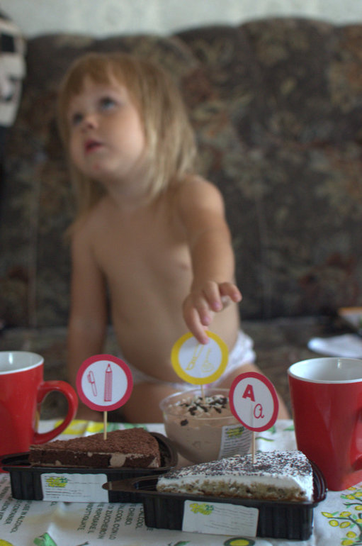 Фото сверху уже из группы, но обо все по порядку. Накануне я хотела испечь каких-нибудь кексом и делать это потом каждый год перед очередным походом в сад. Но наш папа меня "опередил" и взял разных пирожных. Поэтому мы все вместе их и слопали под 2 серию "Как приручить дракона". В общем, отметили отвязным "праздником непослушания" последний свободный день:))