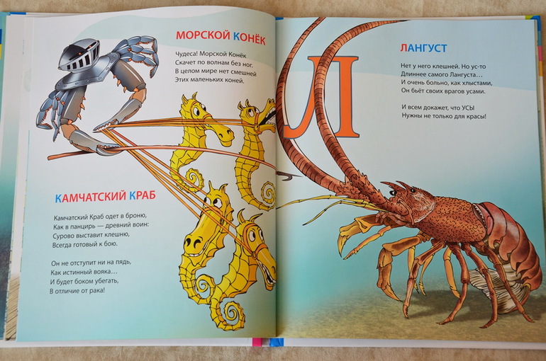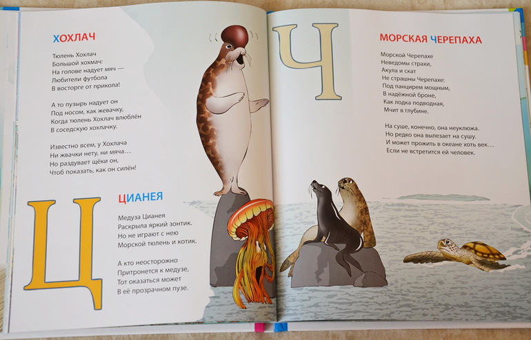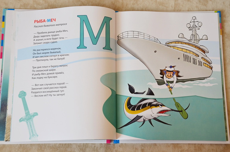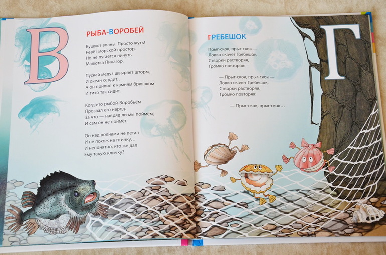Еще одна интересная мысль азбуки. Насте она нравится. А мне не очень. Некоторые стихи прям совсем не очень. Некоторые - ничего. На картинках некоторые рыбы ну уж с очень страшными зубами. Но вот Насте нравится и все тут.