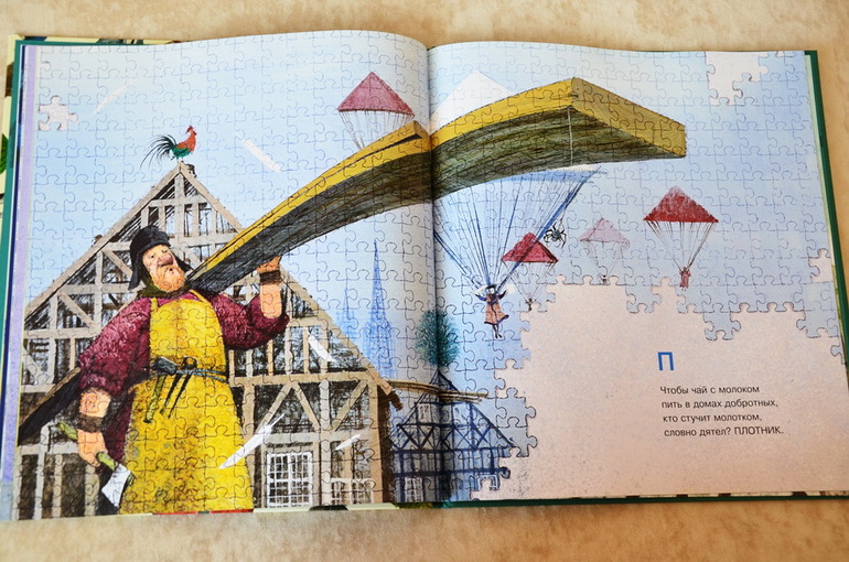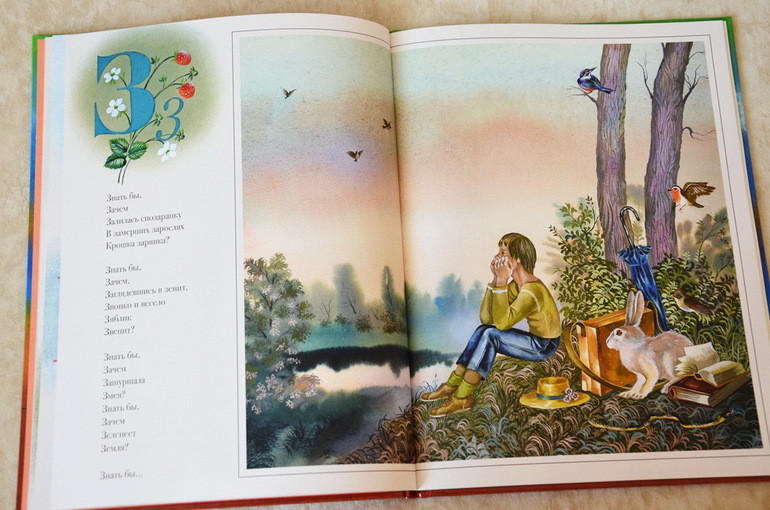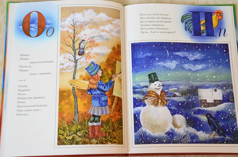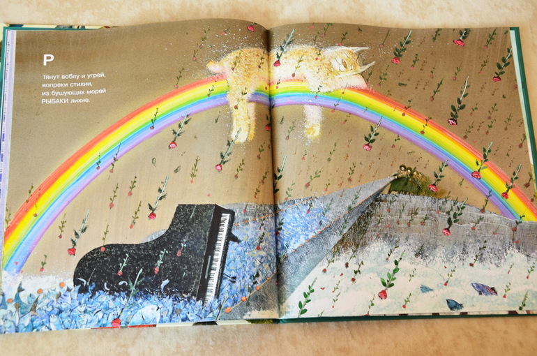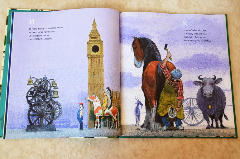 И наконец, "Рабочая азбука" И. Бродского. Внушительное издание "Акварели". Очень красочное. Плотные глянцевые страницы.Но на мой взгляд - исключительно на любителя, хотя рейтинги у книги высокие. Лично мы полистали ее всего пару раз. Хотя сами картинки рассматривать интересно. На них можно найти слова на ту букву, какой посвящена иллюстрация.