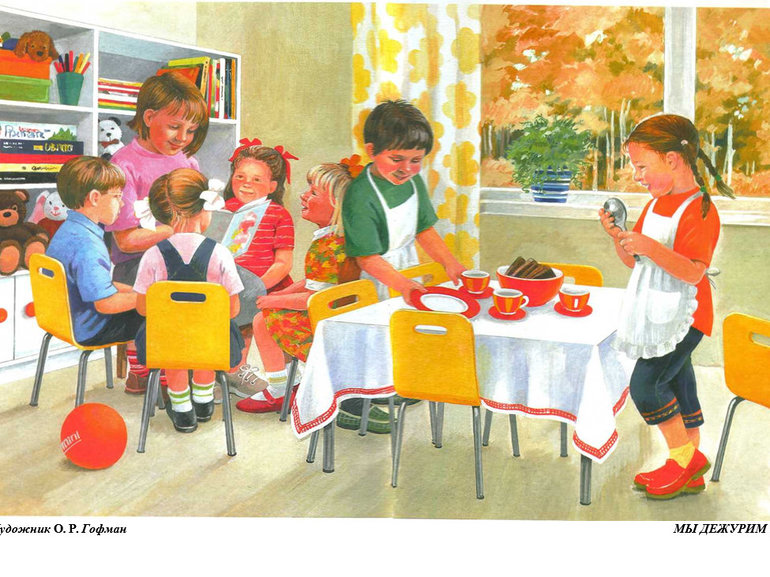 Сначала обсуждали картинку в режиме вопрос-ответ (это из пособия Нищевой "Наш детский сад", там конспекты занятий по различным ситуациям в детском саду, много идей). Можно было побольше всего взять для игр по саду, но как-то не сложилось, может, потом еще вернемся, т.к. картинки для обсуждения я все распечатала:))