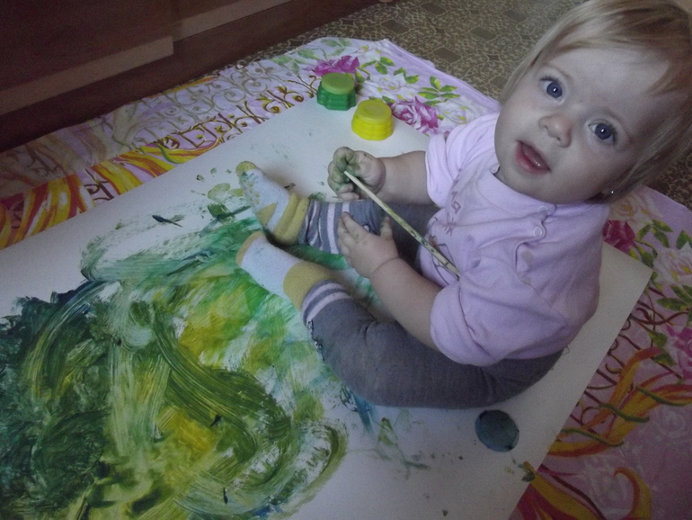 Рисуем.Пока только пальчиковыми красками.