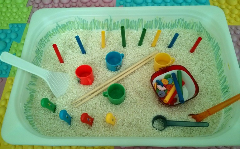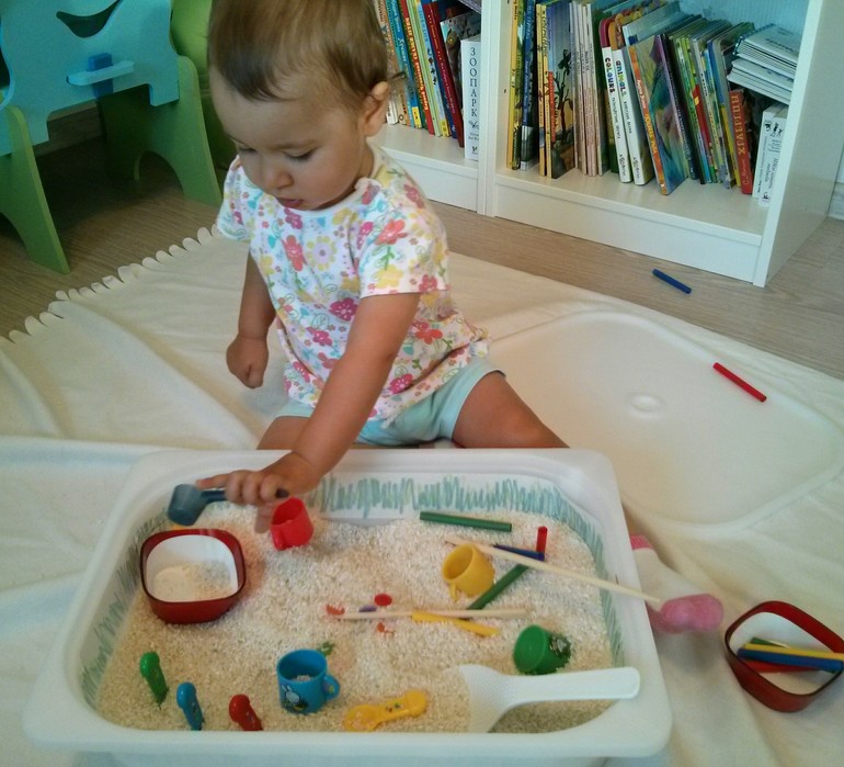 Расплескав все вокруг, чумазые, но довольные мы пошли умываться, а потом перешли ко второй части ... сенсорной коробке