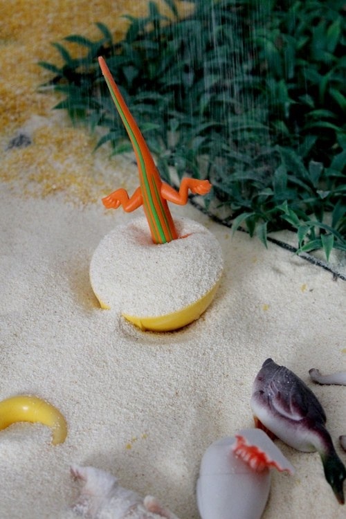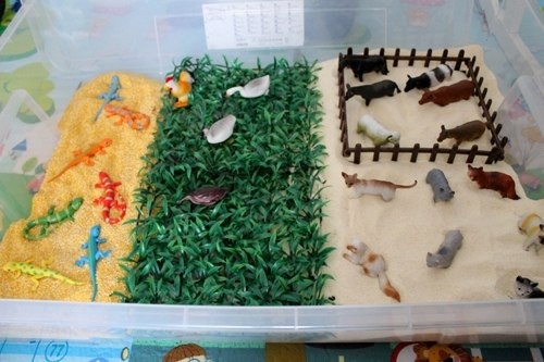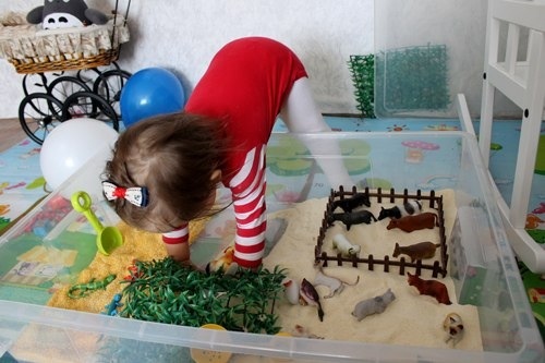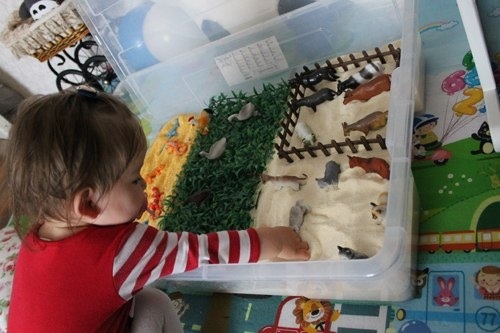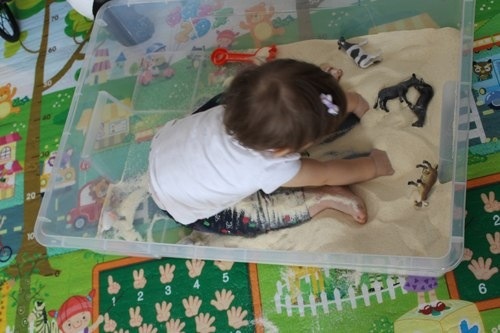 Звери в первые разы не вызвали никакого интереса,просто хотелось возиться в песке: