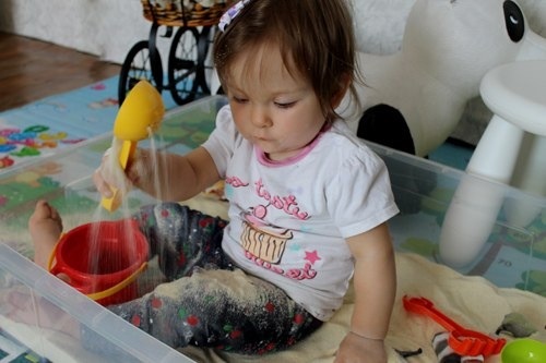 Я достала песочные наборы и предоставила время на то,чтобы наиграться: