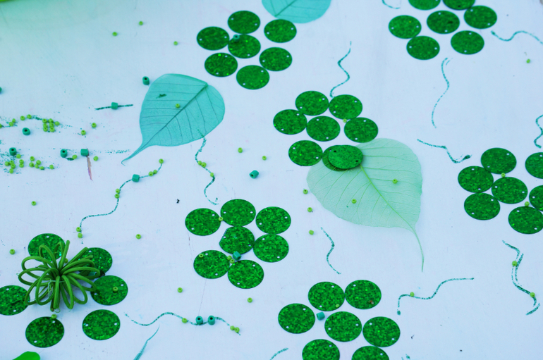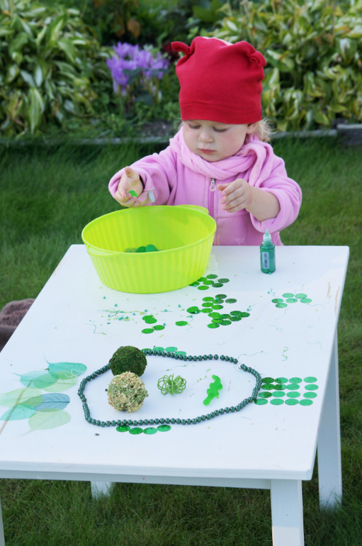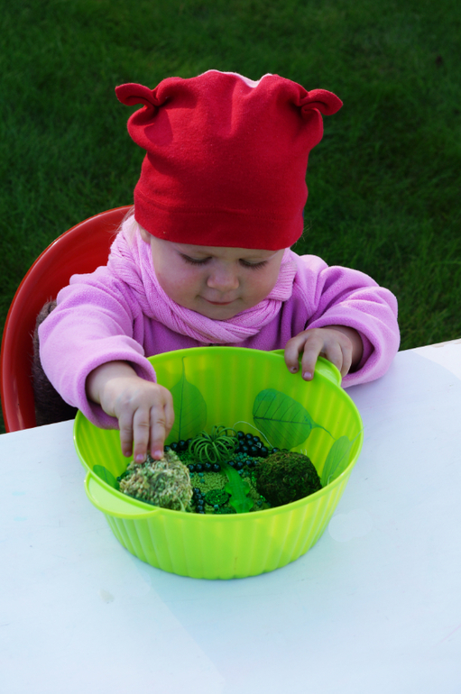 Развитие детей второго года жизниУ всех в разгаре осенние занятия, а мы как-то еще живем на даче, ловим последние теплые лучики солнца, и изучаем зеленый цвет! Расправились с основными базовыми - красным, желтым и синим, и вот напоследок осталась зелень уходящего лета! На этот раз в зеленой миске поселились разные бусинки, пайетки, шарики, листья, купленные в швейном магазине, а еще зеленый клей с блестками, который приставал к рукам, и Маша не хотела им особо рисовать. Зато мы удачно из этих компонентов составляли разные рожицы!А в завершении. все, как всегда, оказалось на земле! Такое вот зеленое занятие вышло!