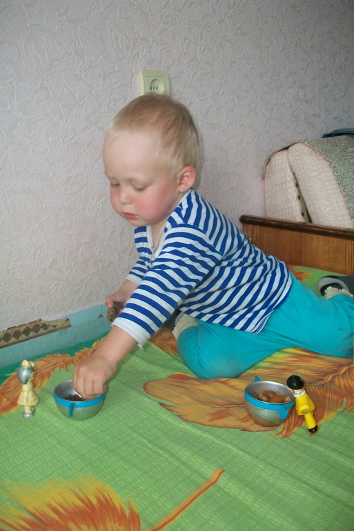 Дала лото и сами листочки. Не успела даже объяснить принцип, а он уже начал всё складывать