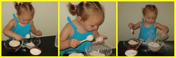 Перемололи зерно. Вместо мельницы - кофемолка. Муку для наглядности я, конечно, заранее насыпала.