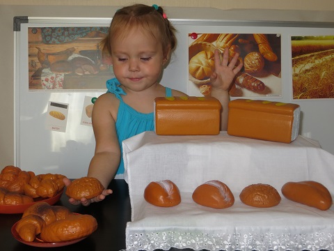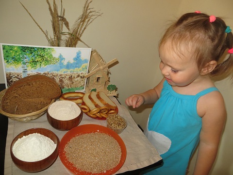 Начали с того, что рассмотрели разные виды хлеба, зерно, крупу, сравнили пшеничную и ржаную муку.