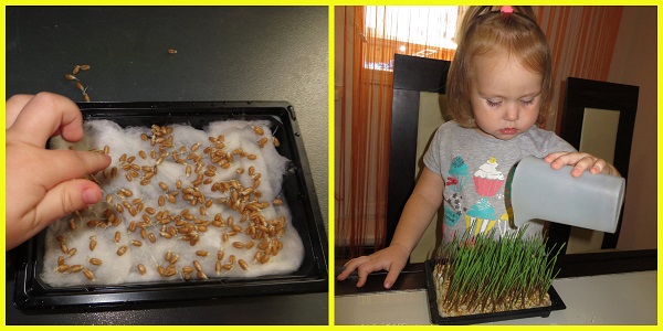 Посадили зерна пшеницы, заботливо поливали и наблюдали, как они прорастают.