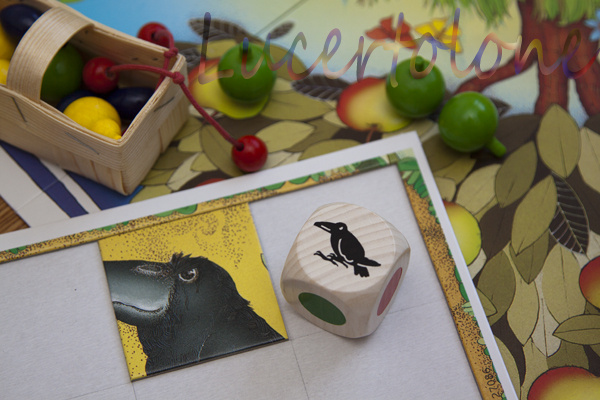 На остальных гранях цвета искомых фруктов, собственно ворона и еще корзина.