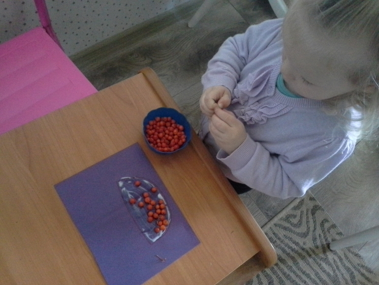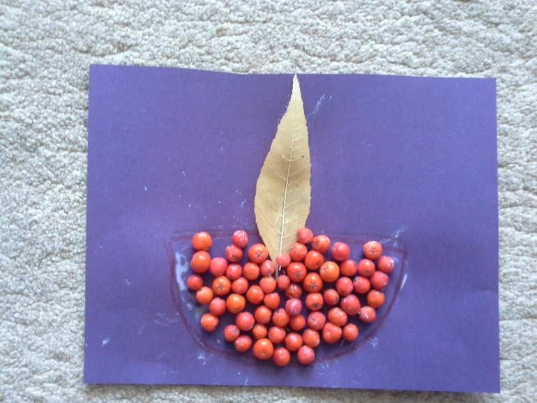 6. Аппликация из рябины и листика «Кораблик с парусом»