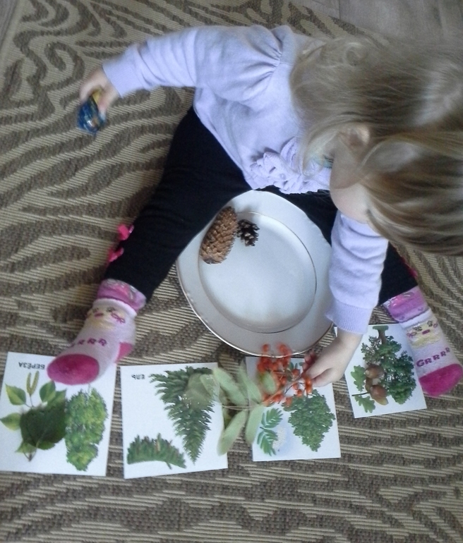 Методика Марии МонтессориВ пятницу погода выдалась теплая, солнечная. На дообеденной прогулке мы с Ульяной собирали всё, что попадалось нам по пути. Принесли домой, разложили всё на столе.