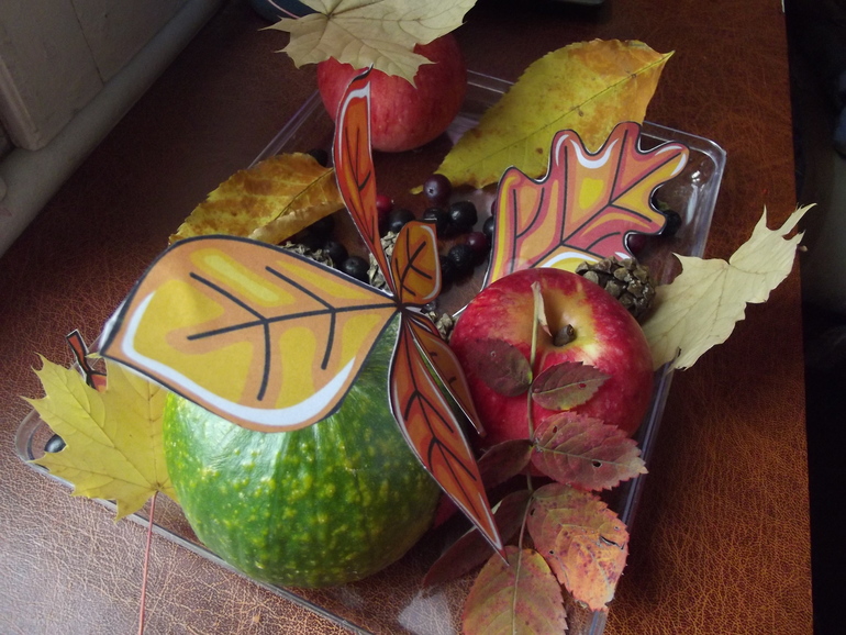 Сделали аппликацию.Маша клеила с моей помощью листочки,Соня наклейки.