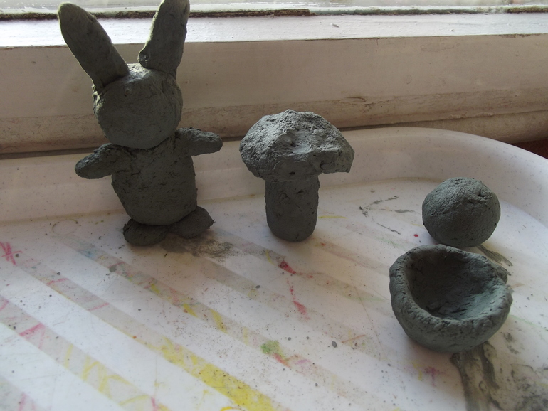 Первый раз лепили из глины.Первый раз для всех,я тоже не лепила с детства.))Глину купили не дорогую.Оторвались по полной,очень приятно поляпаться в "грязи",особенно в восторге была Маша.Сам процесс фотографировать сложно,покажу что слепили.