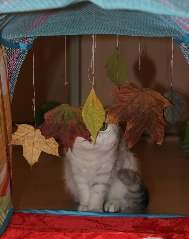 на четвереньках ... внутри нашего шуршащего тоннеля... с осенними листиками