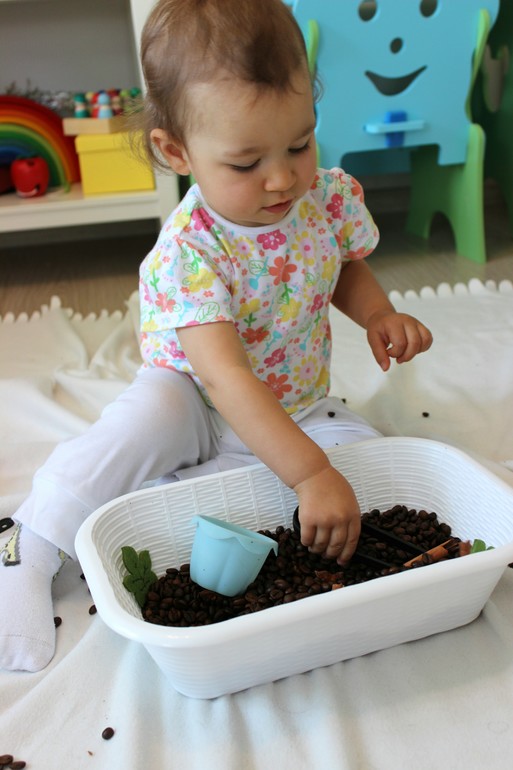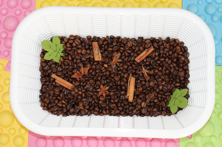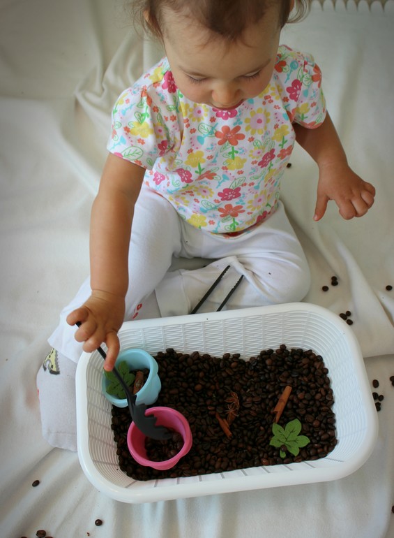 Здесь как обычно - пересыпаем ложками, руками, пальчиками, играем с пинцетом... и наслаждаемся ароматом (оставшийся день в квартире витал этот волшебный дух кофе =))