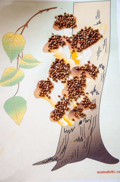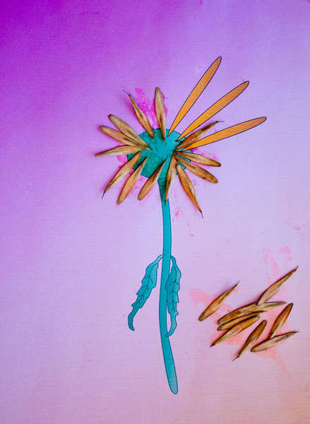 1. Поделка из семян "Цветочек". Алисе было неудобно, семена приклеивались к пальцам, не хотели липнуть к бумаге. Но она пыхтела до тех пор, пока не получила результат: