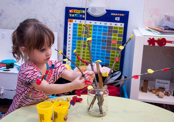 10. На голые ветки лепили из пластилина осенние, желто-красные листья