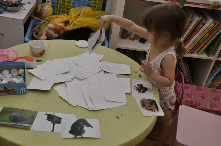 2. Игра на расширение словарного запаса, на проверку знаний. На столе лежат перевернутые картинки. Алиса берет одну, переворачивает. Если она называет изображение на картинке - то забирает ее себе, и в награду получает цветного слоника из игры в слоники (это могут быть и шарики Марблс, и монетки, и все, что интересно ребенку "зарабатывать"). Если не называет - я говорю, что на картинке, и забираю картинку себе. Слоника не даю)