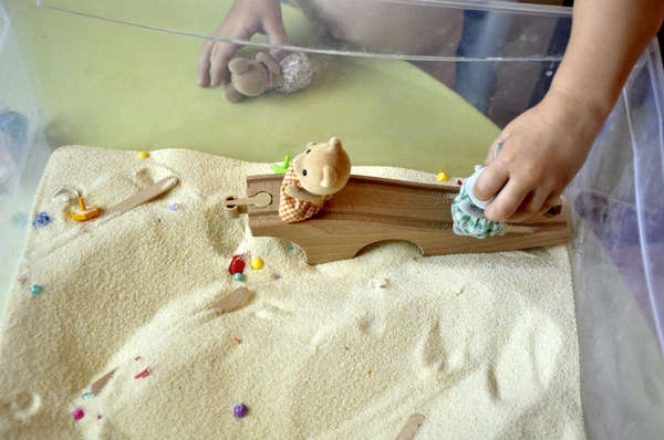 В коробке манка, и часть моста от железной дороги Икеи. Игрушки с него прыгали, как с трамплина.