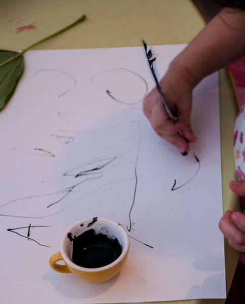 7. Алиса увидела в книжке картинку, как малыш сидит за столом, и на пергаменте пишет пером. Она очень заинтересовалась, что это он делает. Пришлось снова организовывать наглядную игру. Дала птичье перо, налила тушь, предложила листок. Показала, как раньше, когда не было ручек, писали перьями. Ребенок впечатлился:
