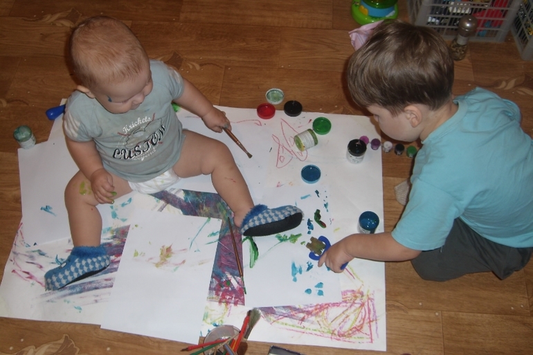 Художественно-эстетическое развитиеДумала, что давно опубликовала этот пост, а он вот. Сентябрь. Данилу ровно год, Денису 2г. 10 мес.