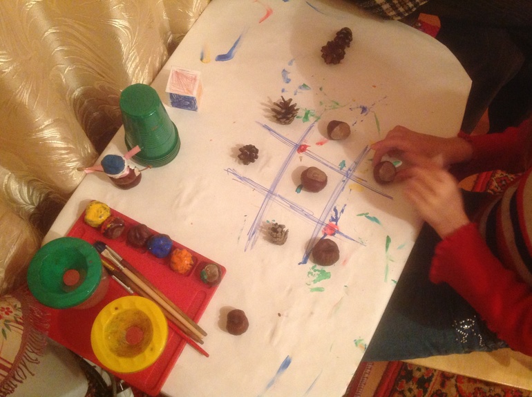 И немного "крестиков - ноликов" (шишки - каштаны)
