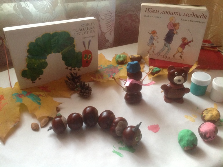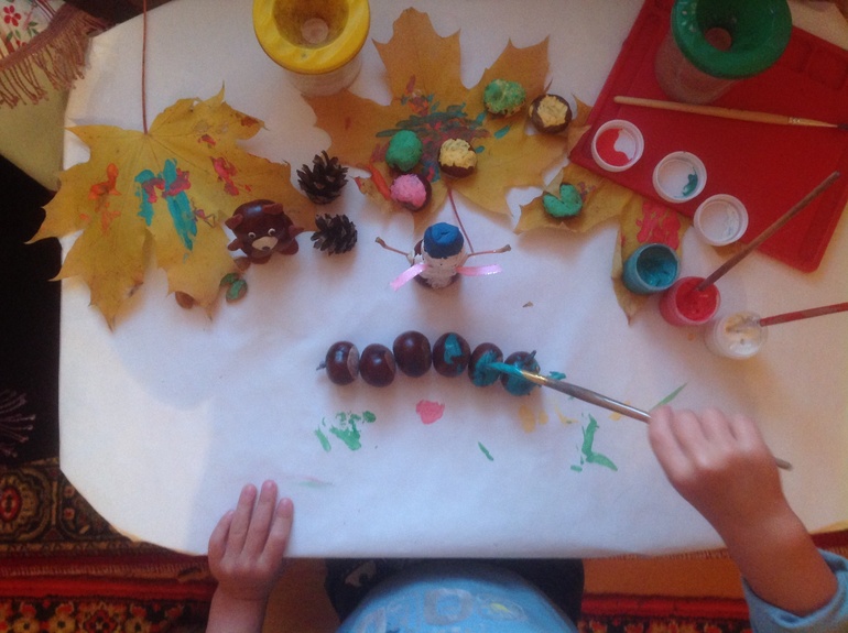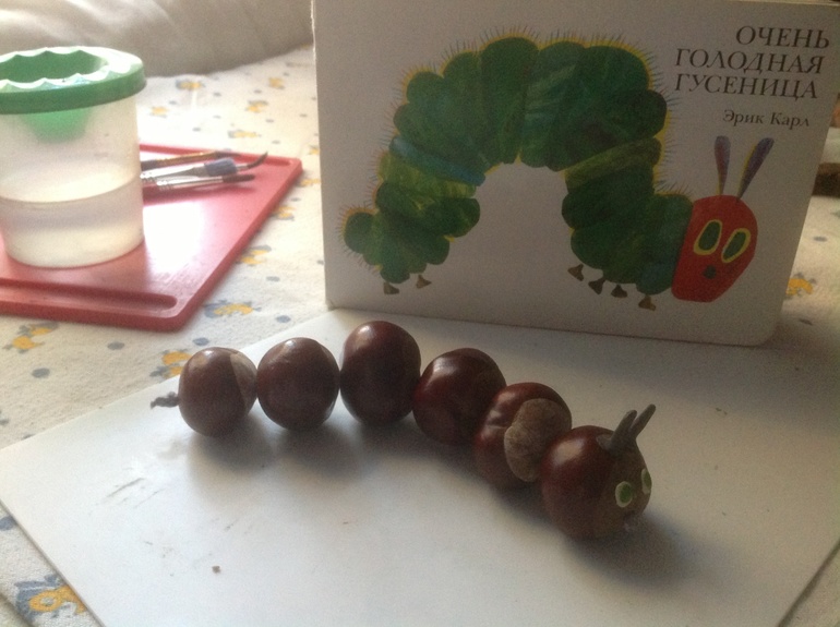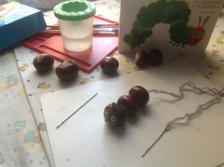 Первой у нас появилась гусеница (каштаны соединила нитью, как бусы)