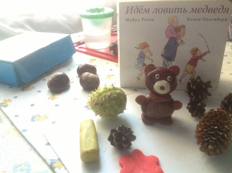 Потом появился мишка, здесь мы с сынулькой воспользовались пластилином: