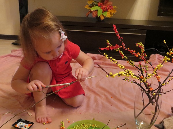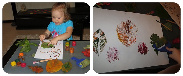 Листья можно сортировать по виду, по цвету. Раскладывать по размеру. Выстраивать логические цветочки и т.д. Но надо сказать, что такие игры Яночка не очень любит. Рисовать - вот это ДА! Может очень-очень долго.