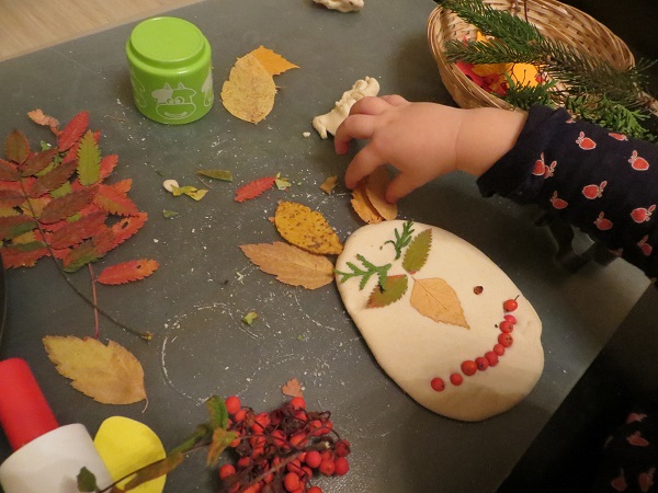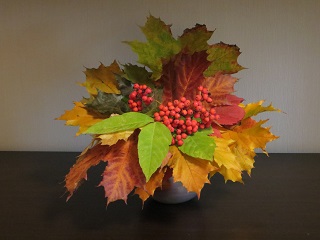 Все собранные листочки Яна приносит домой, и мы составляем яркие осенние букеты.