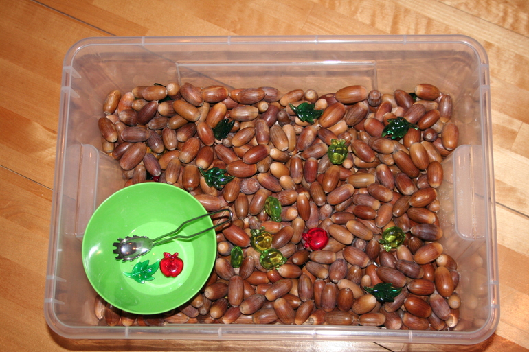 Все о развивающих игрушках, пособиях и книгах (обзоры, рекомендации,хвастики, ссылки)Насыпала в желуди акриловых яблочек, предполагала, что доча будет выбирать ручками. Категорически отказалась запускать руки, но уже несколько дней насыпает ложкой желуди в тарелку и кормит кота.
