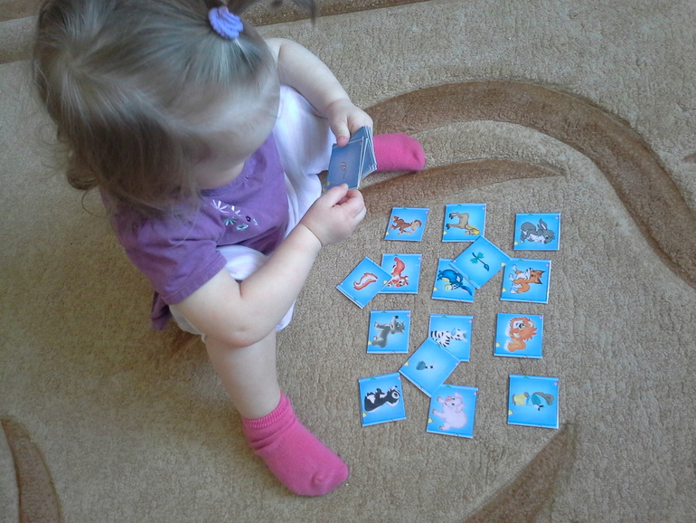 Когда убедитесь, что малыш понял правило, можете давать раскладывать карточки