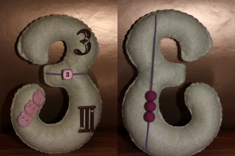 Количество пуговичек и бусин соответствует номиналу цифры, естественно)))