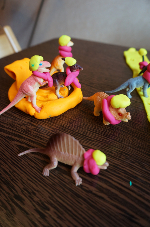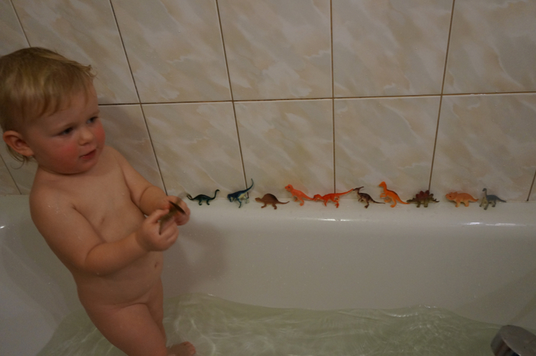 Потом динозавры пошли с ней купаться и тонули под водопадами из душа.