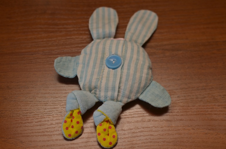 Сама по себе идея хороша (внутри игрушки мешочки с вишневыми косточками, которые можно нагревать или охлаждать), однако на игрушке есть пуговицы, которые меня, как маму, держат в постоянном напряжении, так как моя дочка эти пуговицы постоянно тянет в рот. Понимаю, что пуговицу можно отпороть, а вместо нее пришить, например, лепучки, но руки все никак не доходят