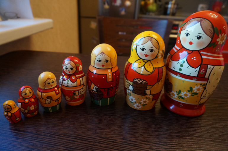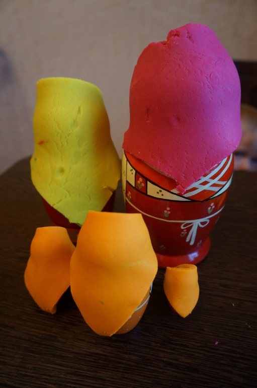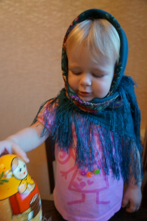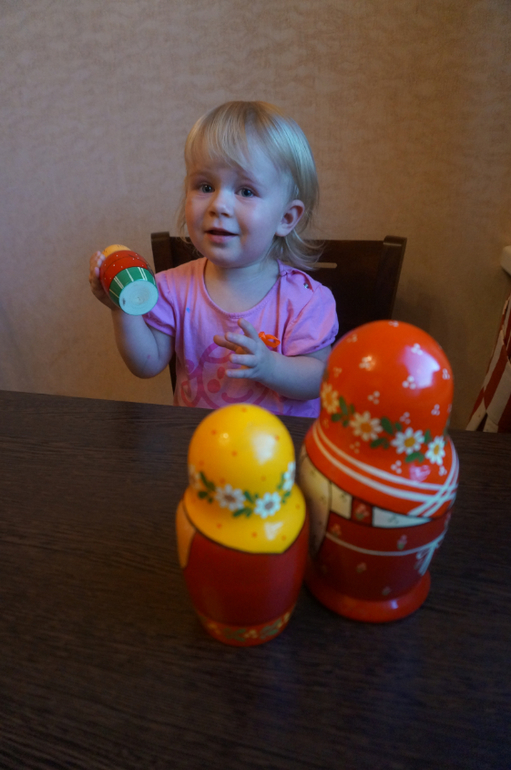 Развитие детей второго года жизниМногие в играх использую матрешку, а у меня она давно стояла в шкафу без дела. И вот пришел ее час! Говорить о том, что с ней легко изучать понятия большой маленький, высокий низкий - не приходится, но у нас в ходу пластилин, поэтому мы стали лепить нашим подружкам платки, потом достали мою коллекцию павло-пасадских, устроили модное шоу, и понеслось - чай, баранки, самовар, мобильный телефон, сумка "Chanel" - все было у наших матрешек. Маша даже с ними легла спать, и уже третий день не расстается!