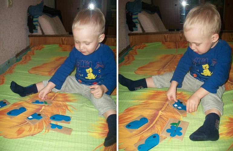 А после вечерней прогулки мы играли в игры для ума: пособирали синие пазлы: цветочек, машинка, бабочка