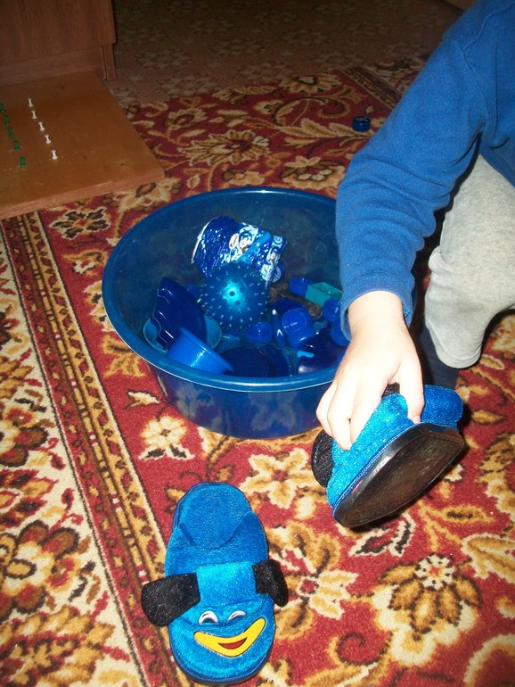 P.S. На следующее утро, т.е. уже сегодня сын снова достал синий стаканчик и стал собирать синие вещи. Я подумала, что второй синий день будет уже перебор, поэтому одела ему оранжевую кофточку и дала оранжевый ящик. Но это уже совсем другая история. Продолжение следует...