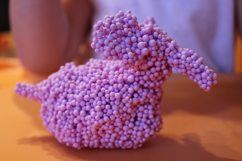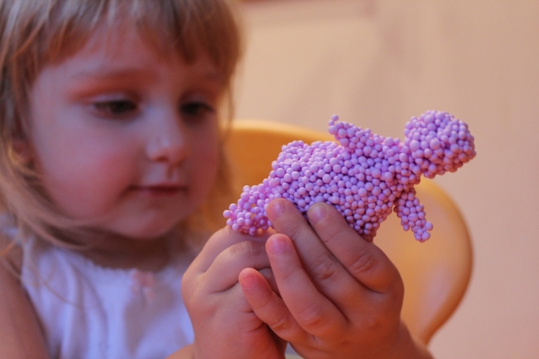 Ну и раз мы начали говорить о пенопластовых шариках, расскажу о наших впечатлениях от шарикового пластилина, ведь именно из них он и сделан. Пластилином, конечно, его назвать сложно, так как субстанция пластичная, но слишком неоднородная.