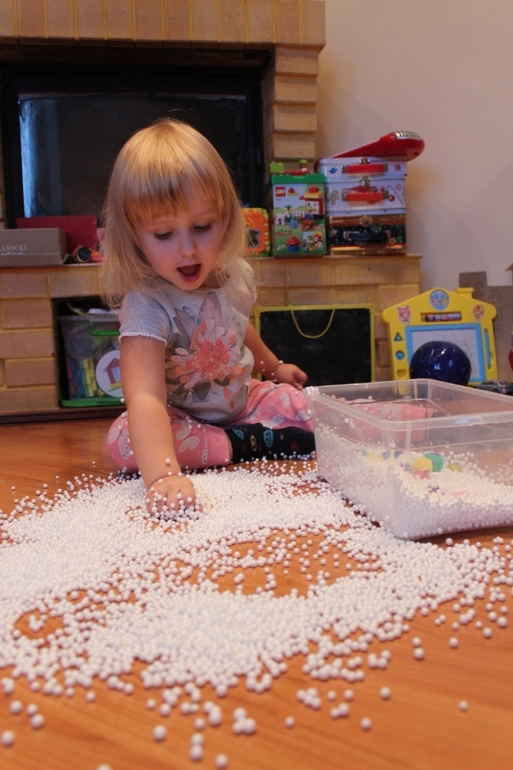 К чему это я?))) Наша история с пенопластовыми шариками или самая "улетная" сенсорная коробочка
