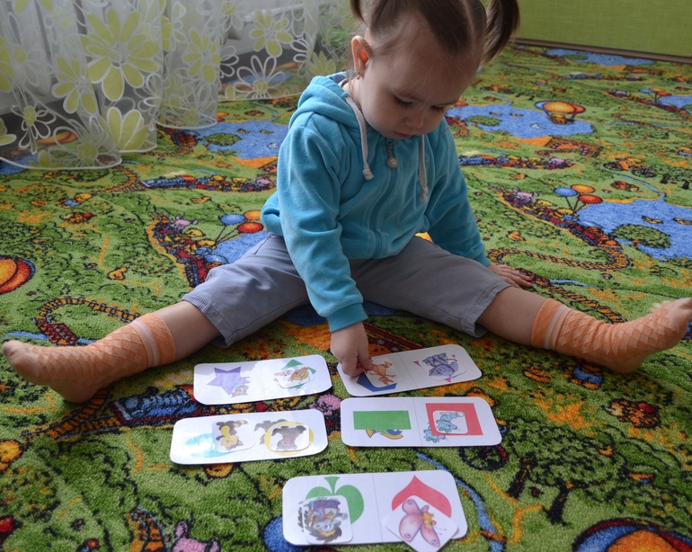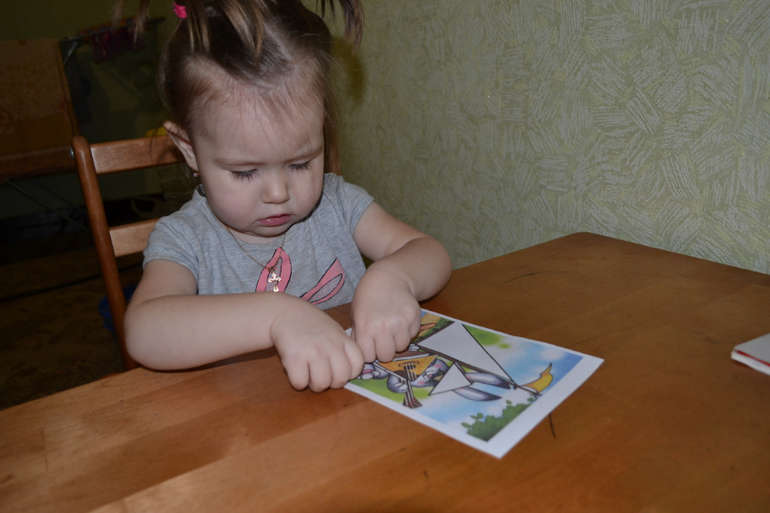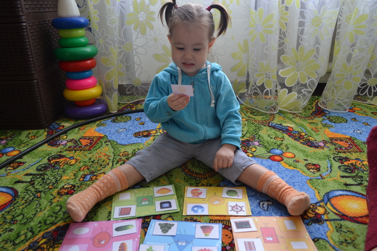 3. Лото по фигурам. Тяжело пошло. Зря я положила сразу все листы.