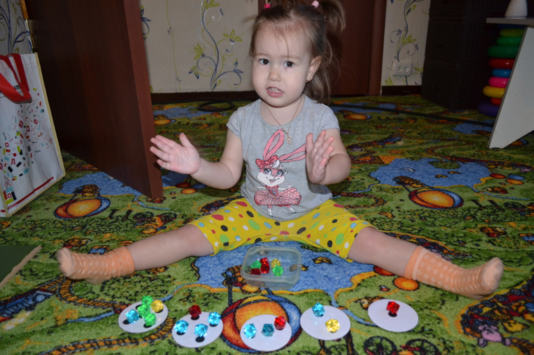 6. Цифры мы не учим вообще. Просто счет. Но и с ним дело не движется. То ли не понимает, то ли интереса нет. Один раз она мне хорошо посчитала шарики на паласе. Мы тогда не занимались, а просто валялись и я попросила посчитать. Хорошо так посчитала до 3. И на этом все, не считает.