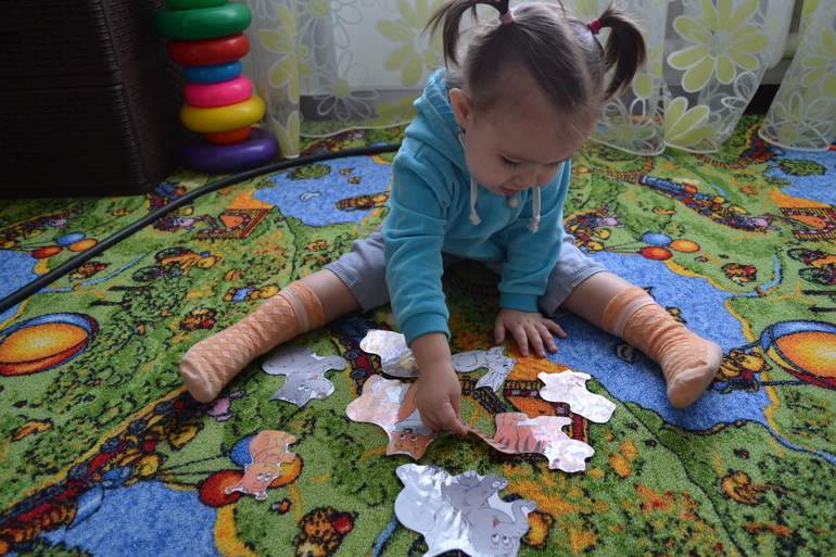 2. Собрала половинки пингвинов. Справилась хорошо.