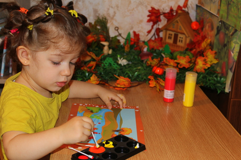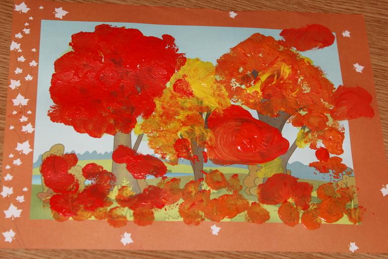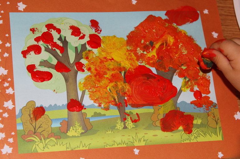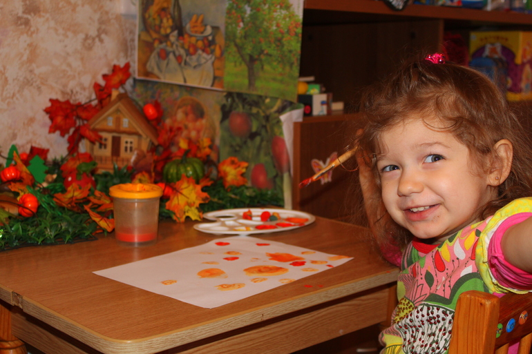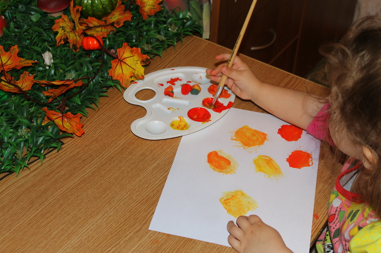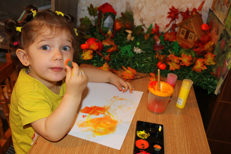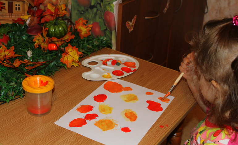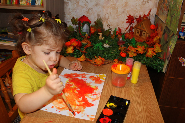 Очень радует меня, что Настена уже не просто калякает красками, а старается что-то изобразить. Вот рисовала осенние листочки.