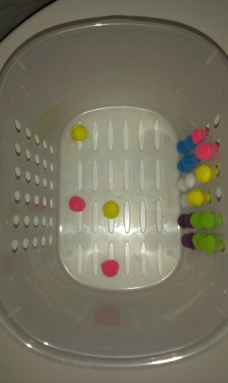 В отверстия вставила самые маленькие помпоны.