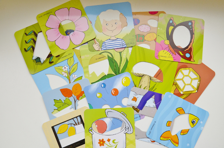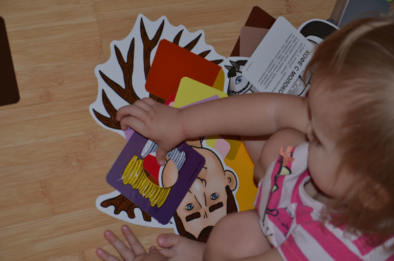 В состав входят также и двухсторонние карточки. Вот как мы с ними играем