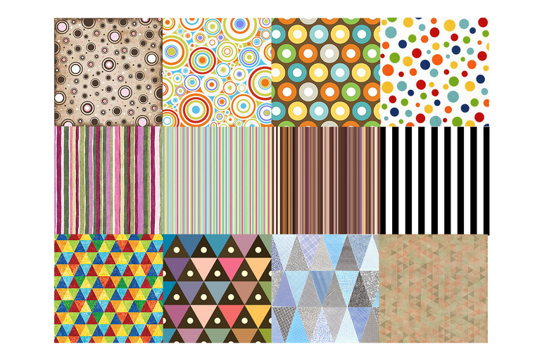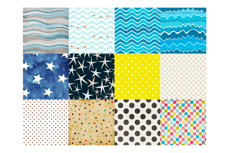 4 листа формата А4, на каждом из которых по 3 вида рисунков, на каждый рисунок 4 карточки. Т.е. получается на одном листе 12 карточек. Итого 48 карточек. (названия рисунков - волны, звезды, горошек, зиг-заг, клетка, пейсли или турецкий огурец, круги, полоски, треугольники, чешуя, сердечки, цветы)